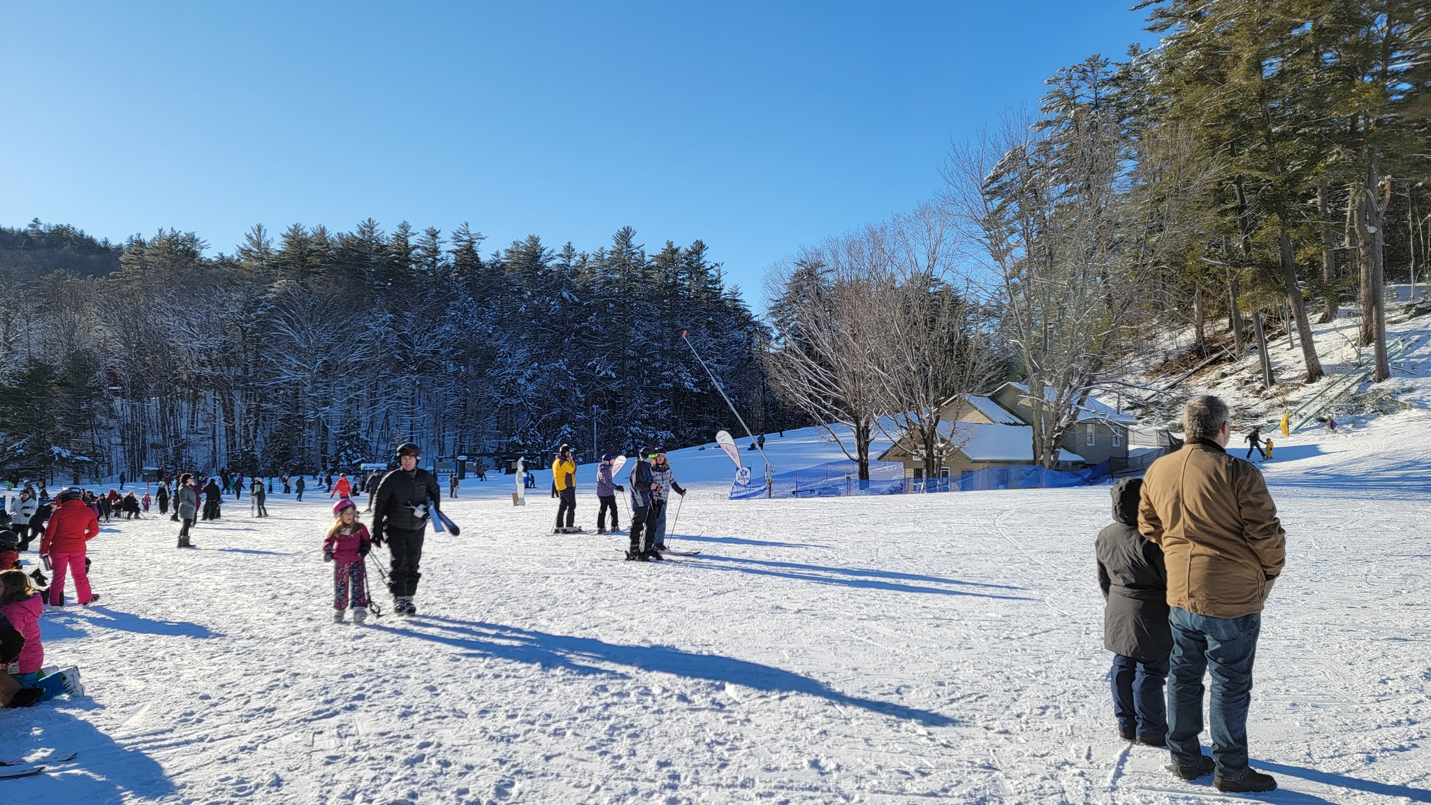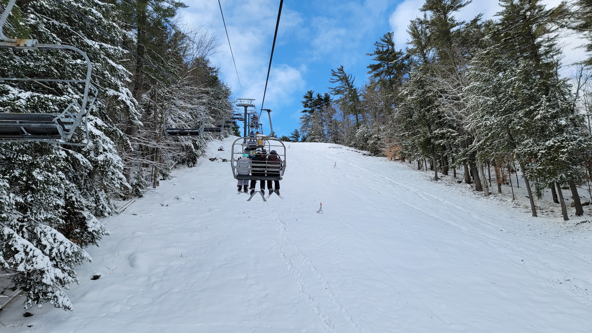 One of the standout features of King Pine Ski Area is the beautiful scenery. The ski resort is nestled in the White Mountains, providing stunning views of the surrounding landscape. The snow-covered trees and rolling hills make for a picturesque setting, and we were able to take some beautiful photos during our visit.